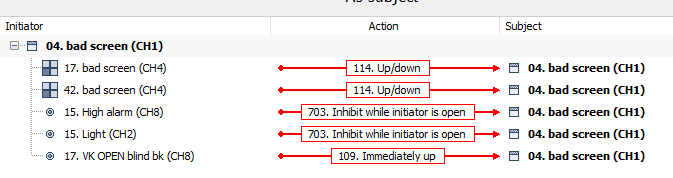 Initiator: Sensor 3; Action: “113.Immediately down” ; Subject: motor blind