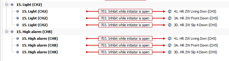 Initiator: Sensor 1; Action: “703.Inhibit while initiator is open” ; Subject: Sensor 2